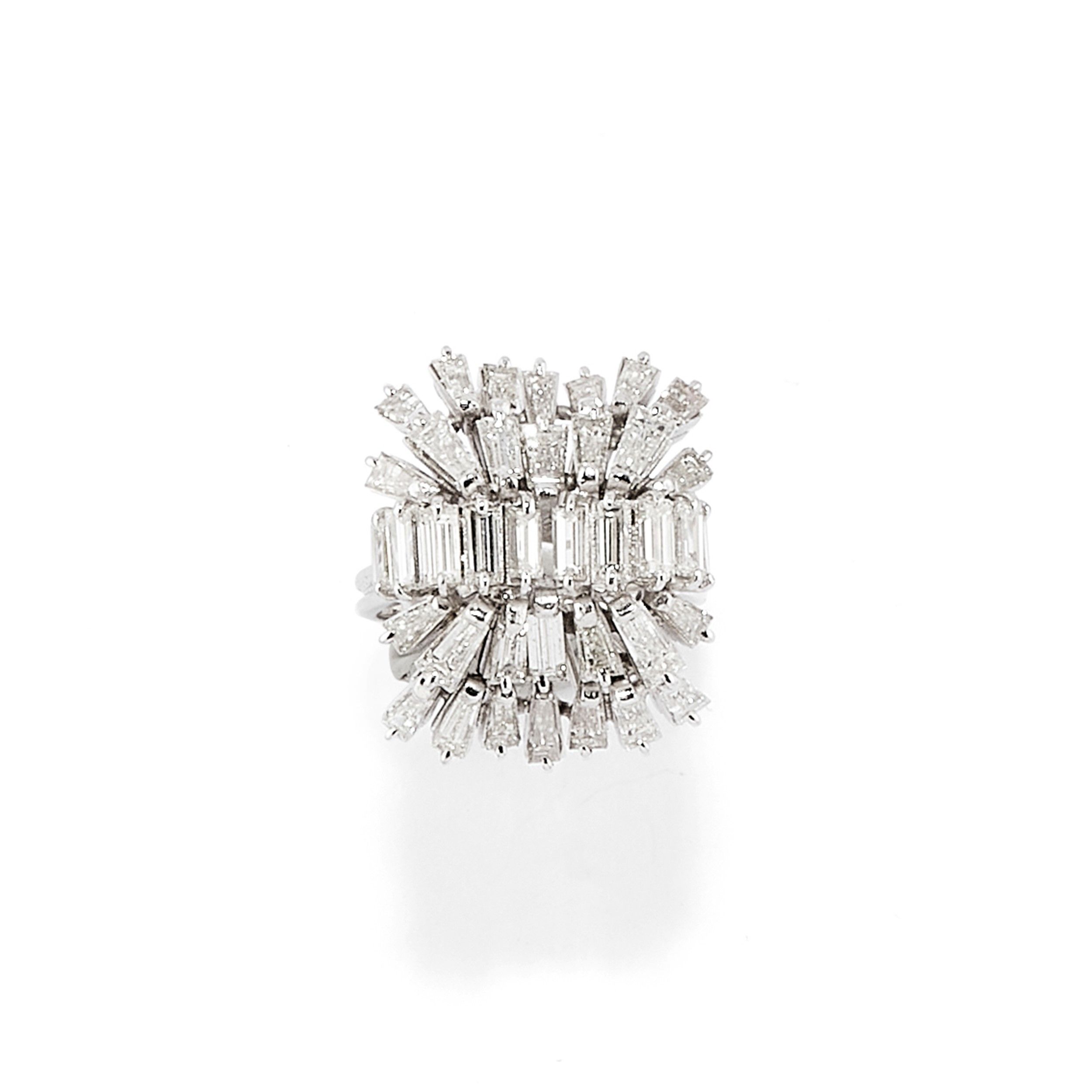 motivo ondulato in diamanti taglio baguette e tapered baguette per totale ct 2,80 circa.