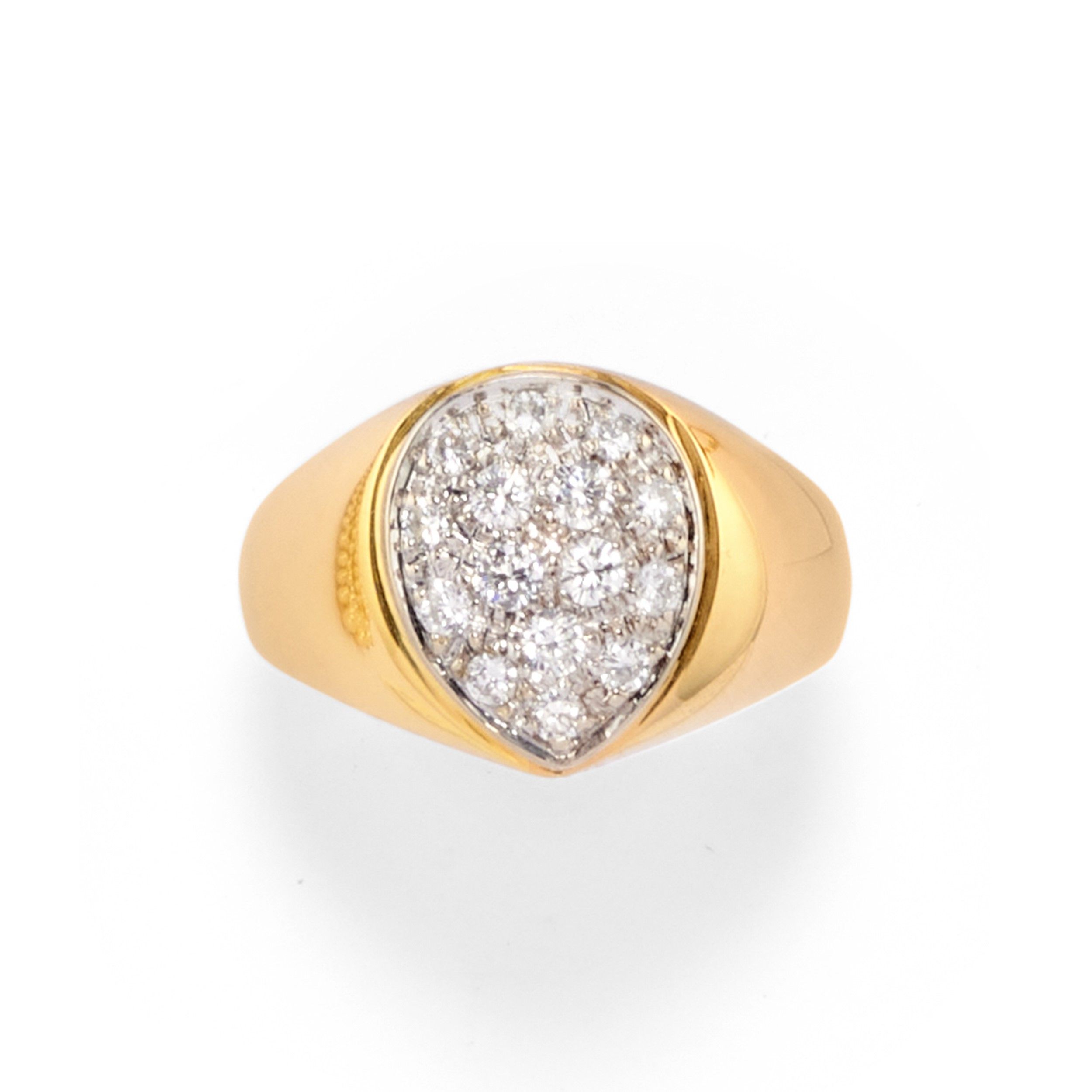motivo a goccia con pavè di diamanti taglio brillante per totale ct 0,60 circa.