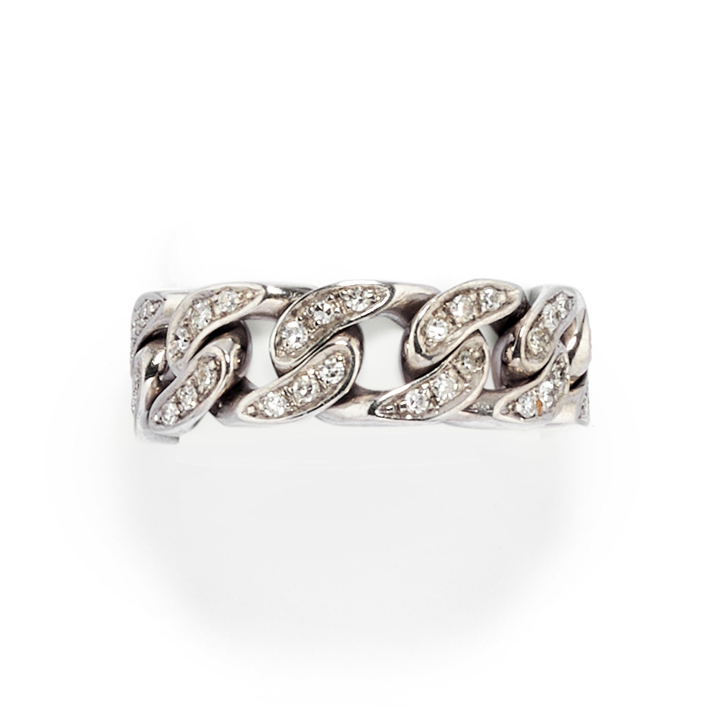 realizzato con maglia groumette morbida e diamanti taglio huit-huit per totale ct 0,40 circa disposti a tutto giro.