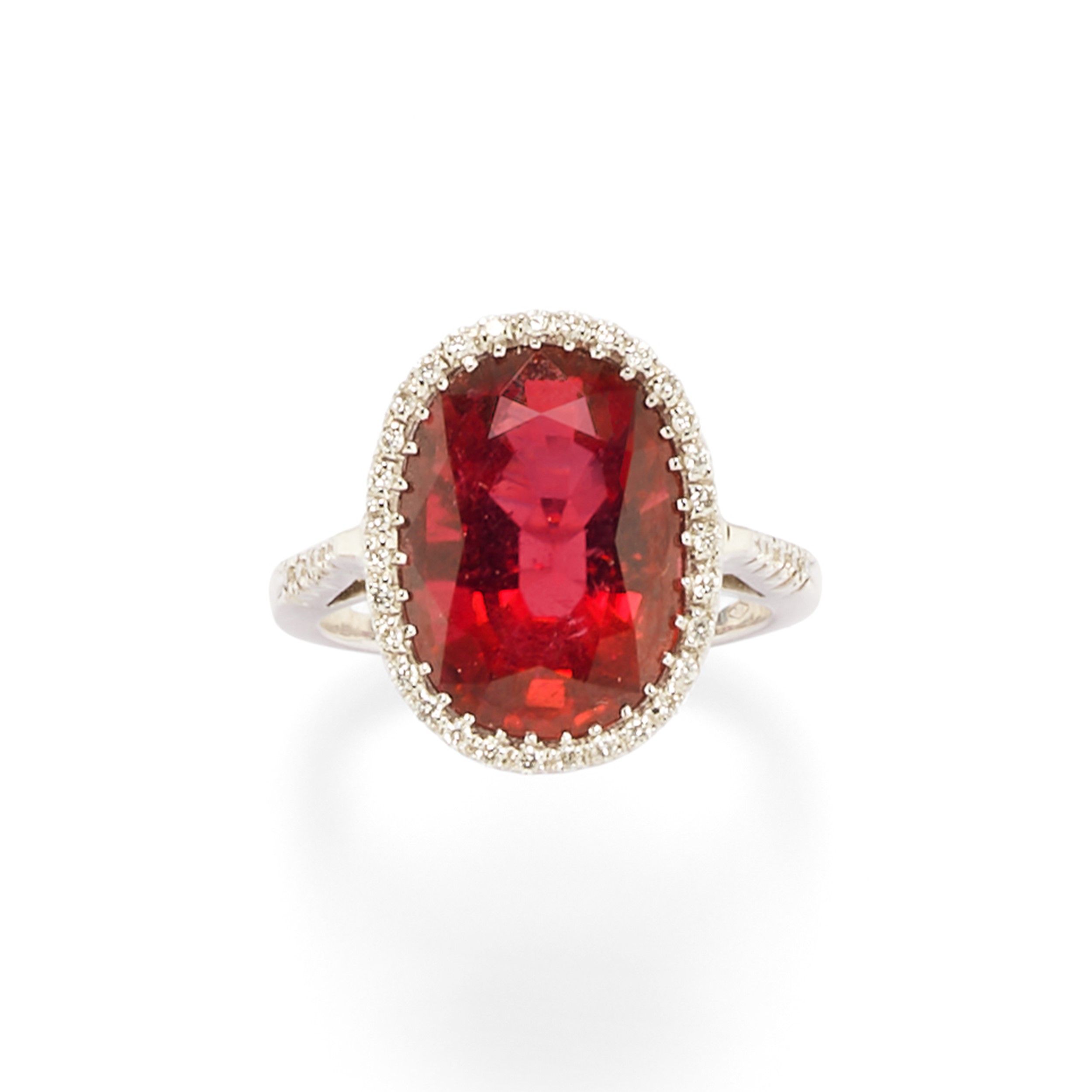 al centro tormalina Brasile taglio ovale di ct 8,58 circa e diamanti taglio brillante per totale ct 0,94 circa.