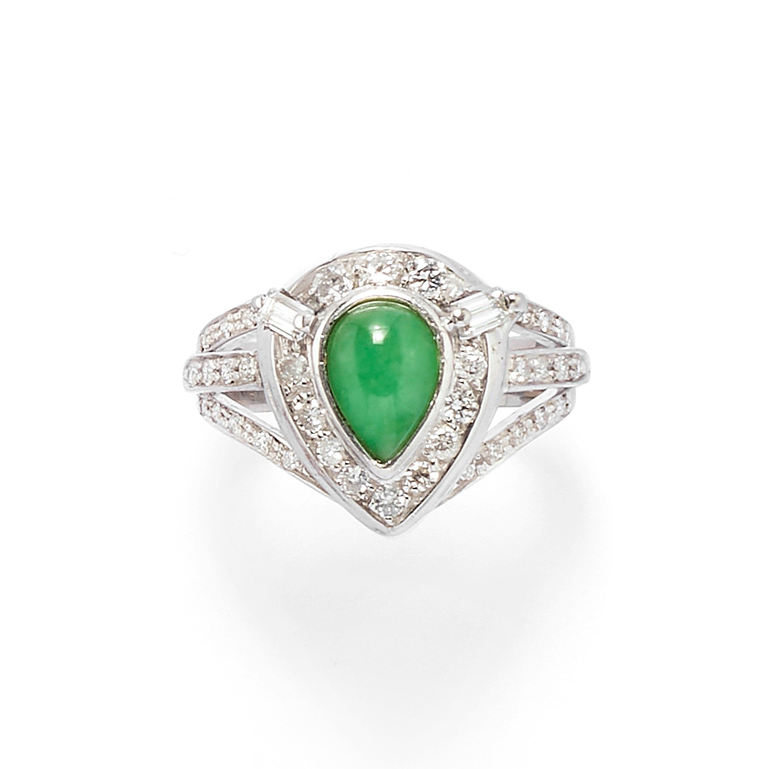 al centro turchese taglio goccia cabochon, diamanti taglio brillante a decoro.