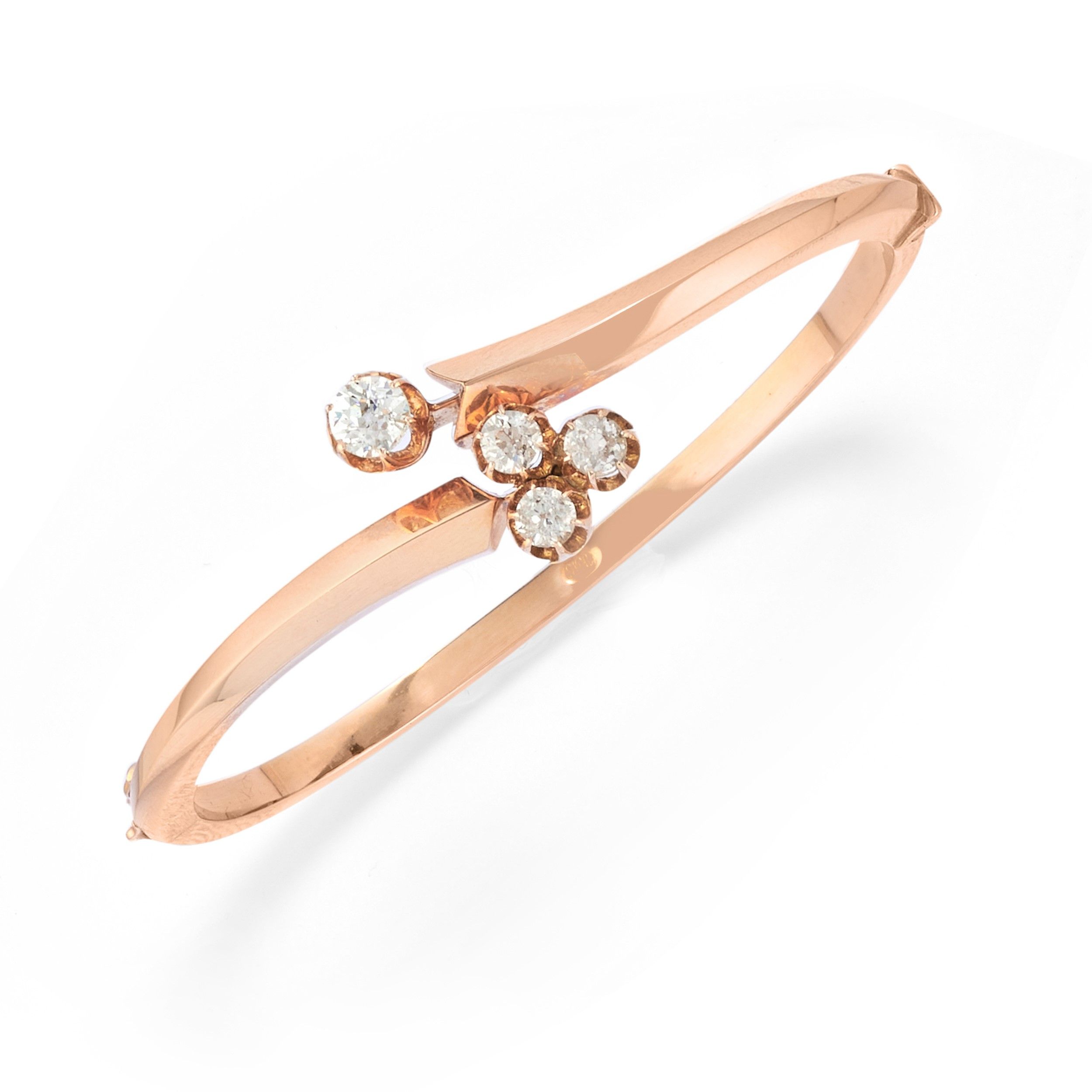 realizzato in canna vuota con al centro quattro diamanti taglio vecchio per totale ct 1,00 circa.