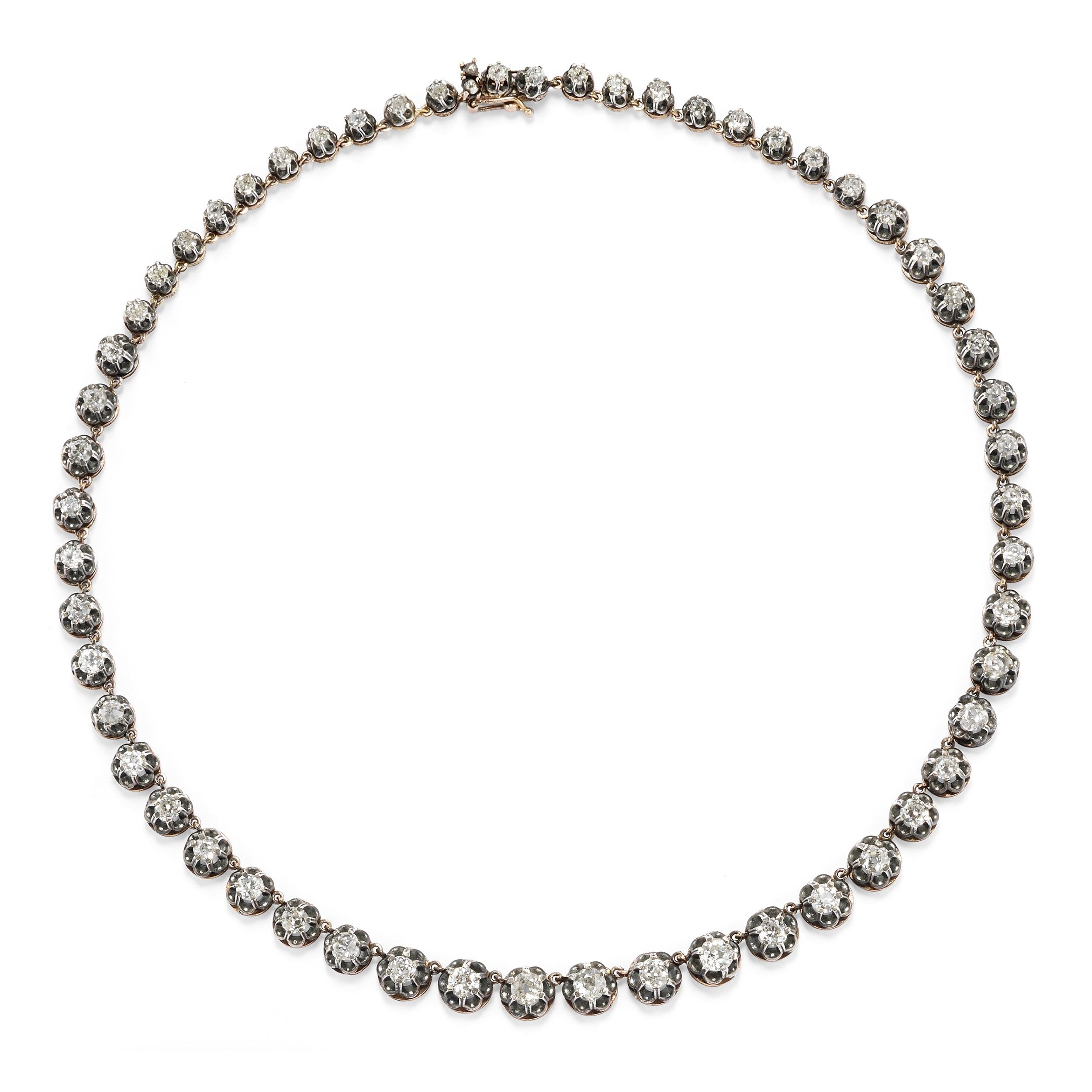 interamente percorsa da diamanti taglio vecchio disposti a degradè dal centro per totale ct 9,50 circa.
