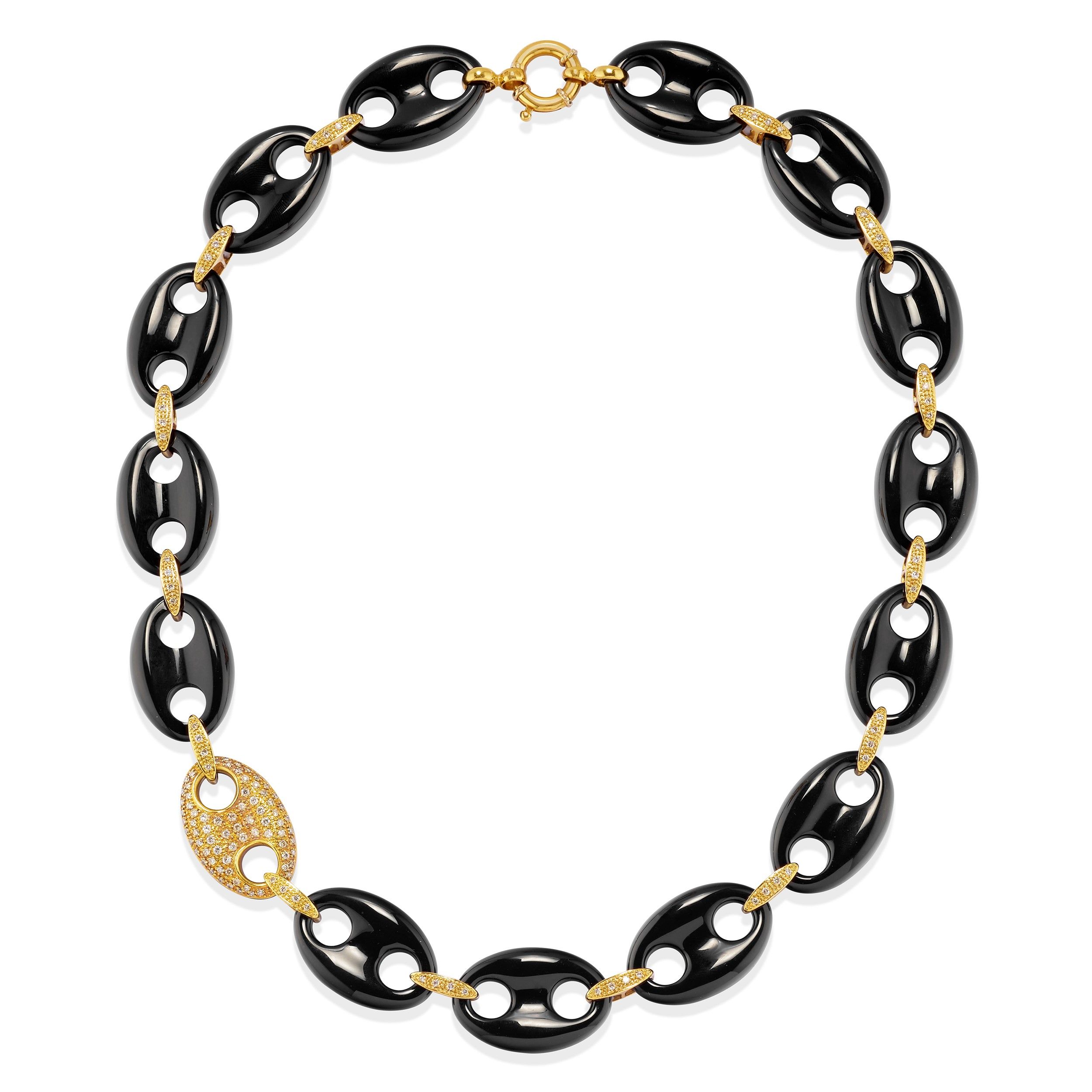 maglia marinara con inserti in pietra nera (prob. onice) e diamanti taglio brillante a decoro.