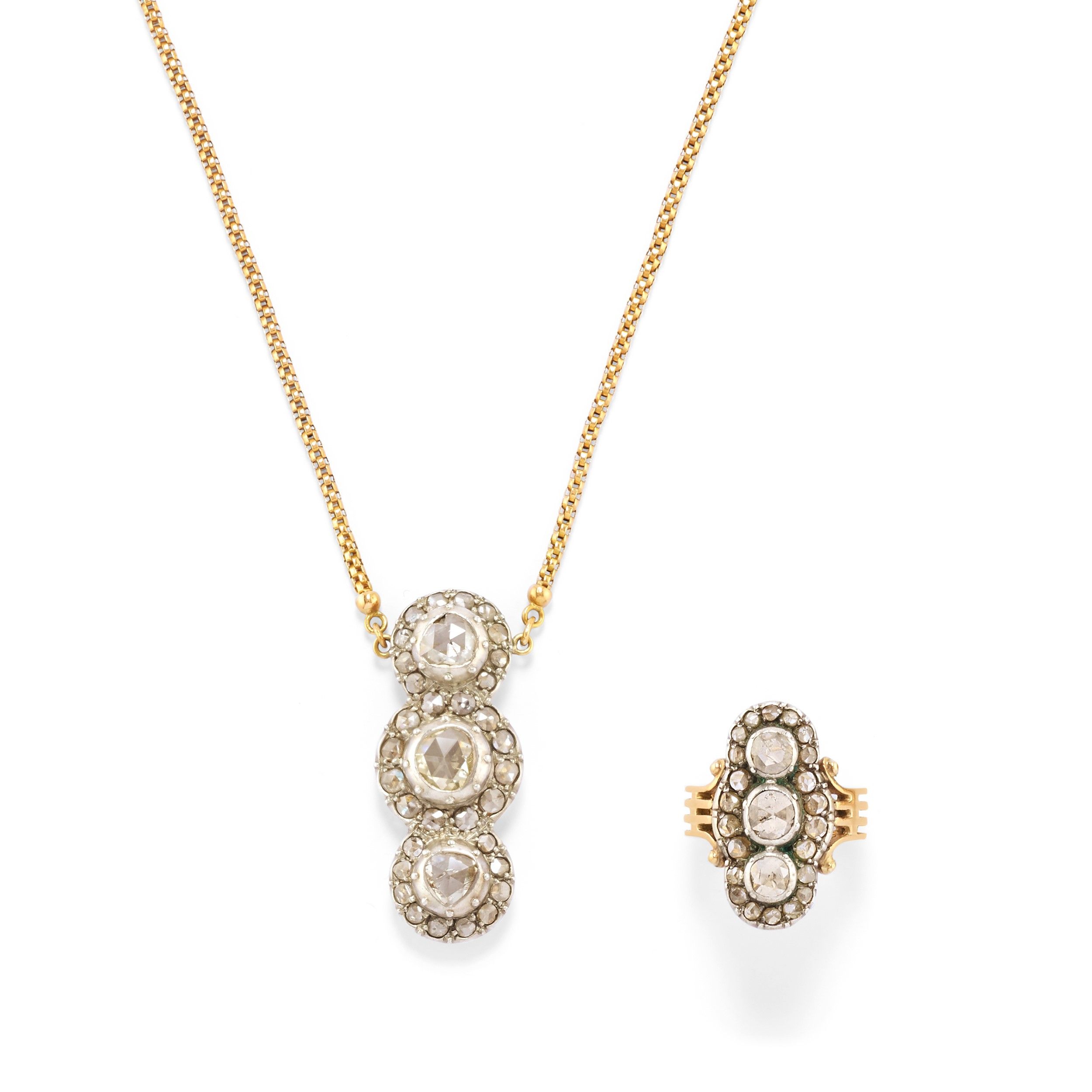 composta da collana e anello con settori verticali, impreziositi da diamanti taglio rosa.