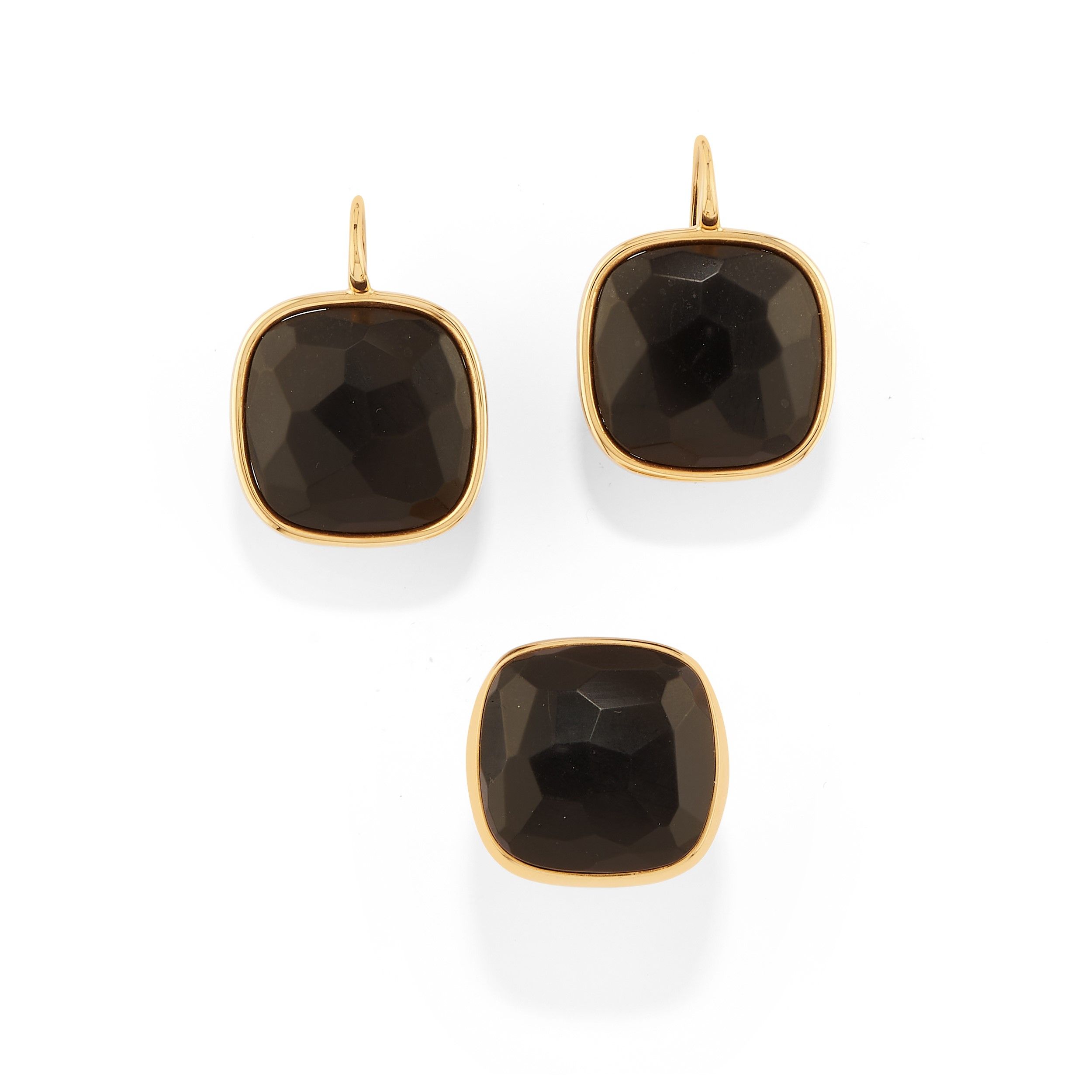 composta da coppia di orecchini con chiusura a monachella e clip ed anello con giaietto nero sfaccettato.