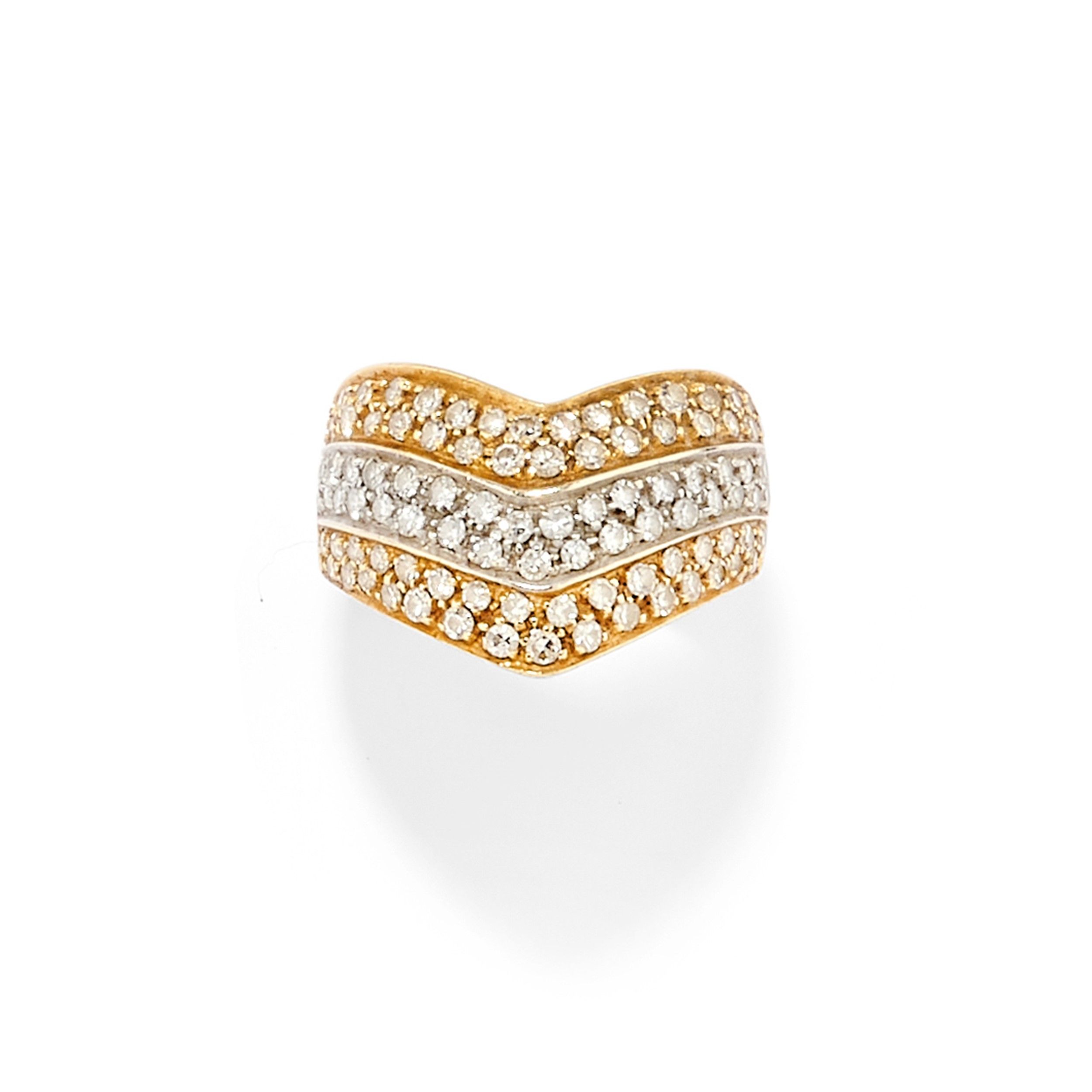 uno a rivière con diamanti taglio brillante per totale ct 0,70 circa, uno a punta con tre file di diamanti taglio huit-huit per totale ct 1,00 circa.