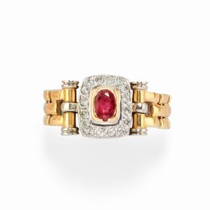 in oro giallo 18k, Peso g 12,40 misura 15 a serpente, con diamanti taglio baguette per totale ct 3,00 circa.&n [..]