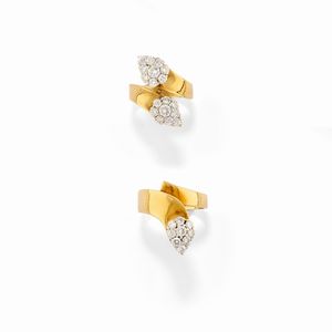 in oro giallo 18k, Peso g 11,60 cm 1,70 a bottone in corallo scolpito a figure zoomorfe, chiusura perno e vite [..]