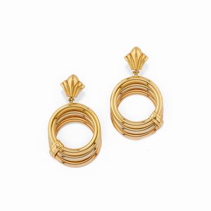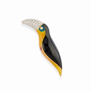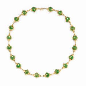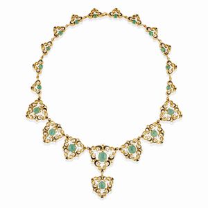 in oro giallo 18k, Peso g 63,10 cm 41,00 settori a scudo smaltati con smeraldi taglio ovale cabochon per totale [..]