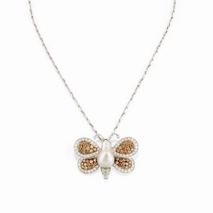 in oro bianco 18k, Peso g 29,80 cm 3,40x4,80 cm 43,00 a forma di farfalla con diamanti fancy color cognac ed incolori [..]