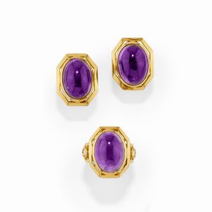 in oro giallo 18k, Peso g 30,80 cm 1,80x2,30 misura 13 a settori ottagonali con al centro ametiste taglio ovale [..]
