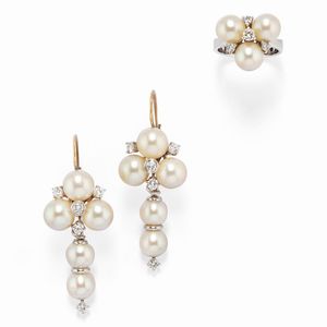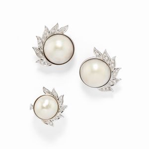 in oro bianco 18k, Peso g 32,45 misura 14 cm 3,00x3,00 composta da anello e coppia di orecchini con chiusura perno [..]