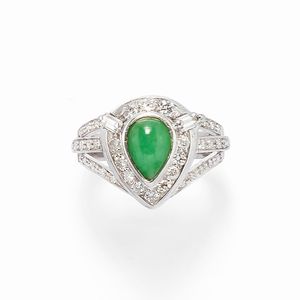 in oro bianco 18k, Peso g 6,45 misura 15 al centro turchese taglio goccia cabochon, diamanti taglio brillante [..]