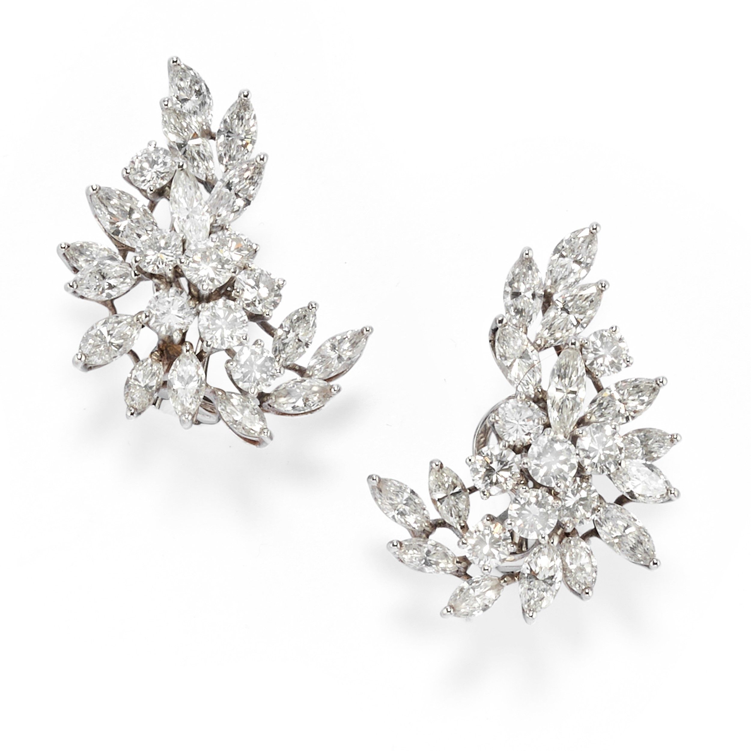 interamente realizzati con diamanti taglio brillante e navette per totale ct 6,00 circa, chiusura a clip.