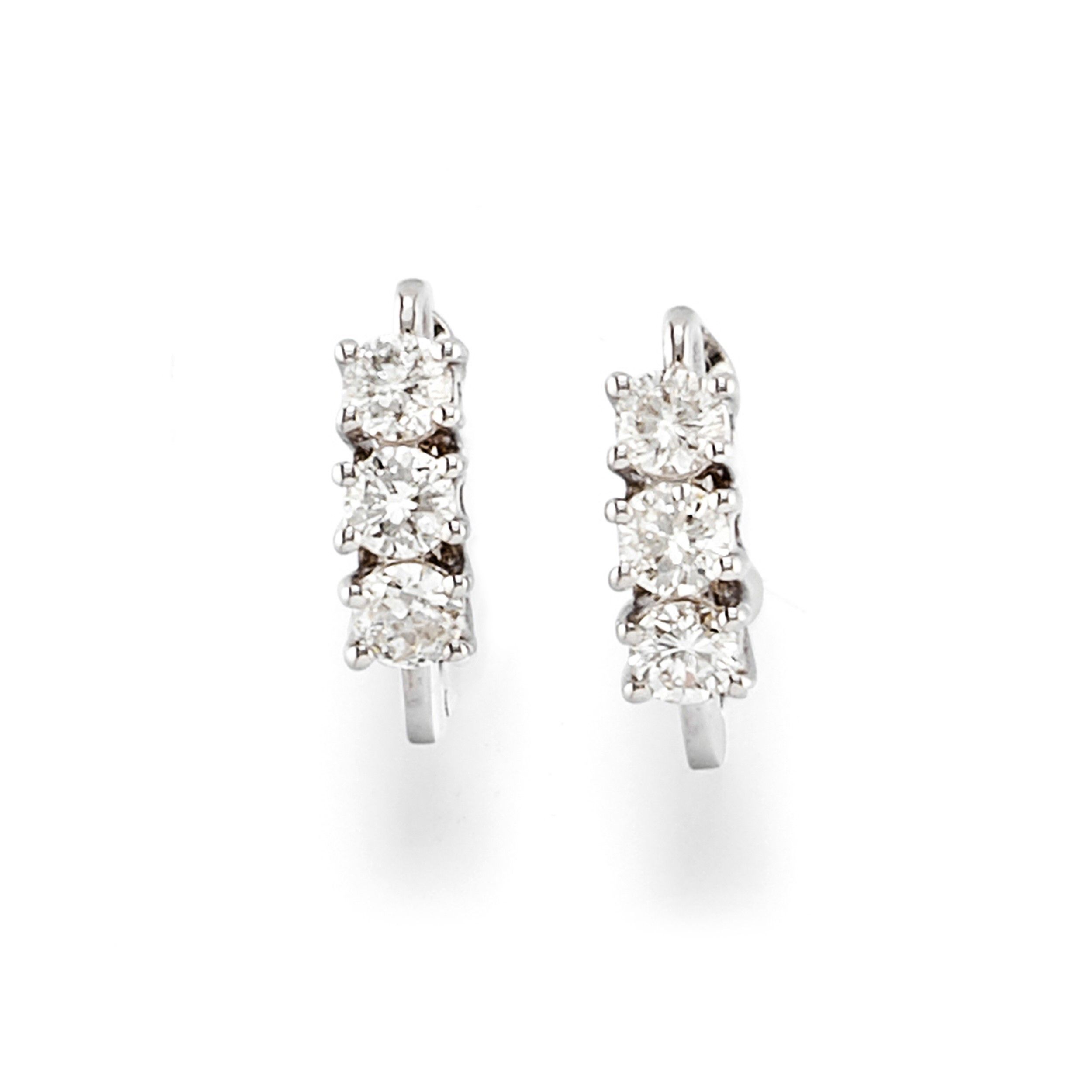 con diamanti taglio brillante per totale ct 1,10 circa, chiusura perno e clip.