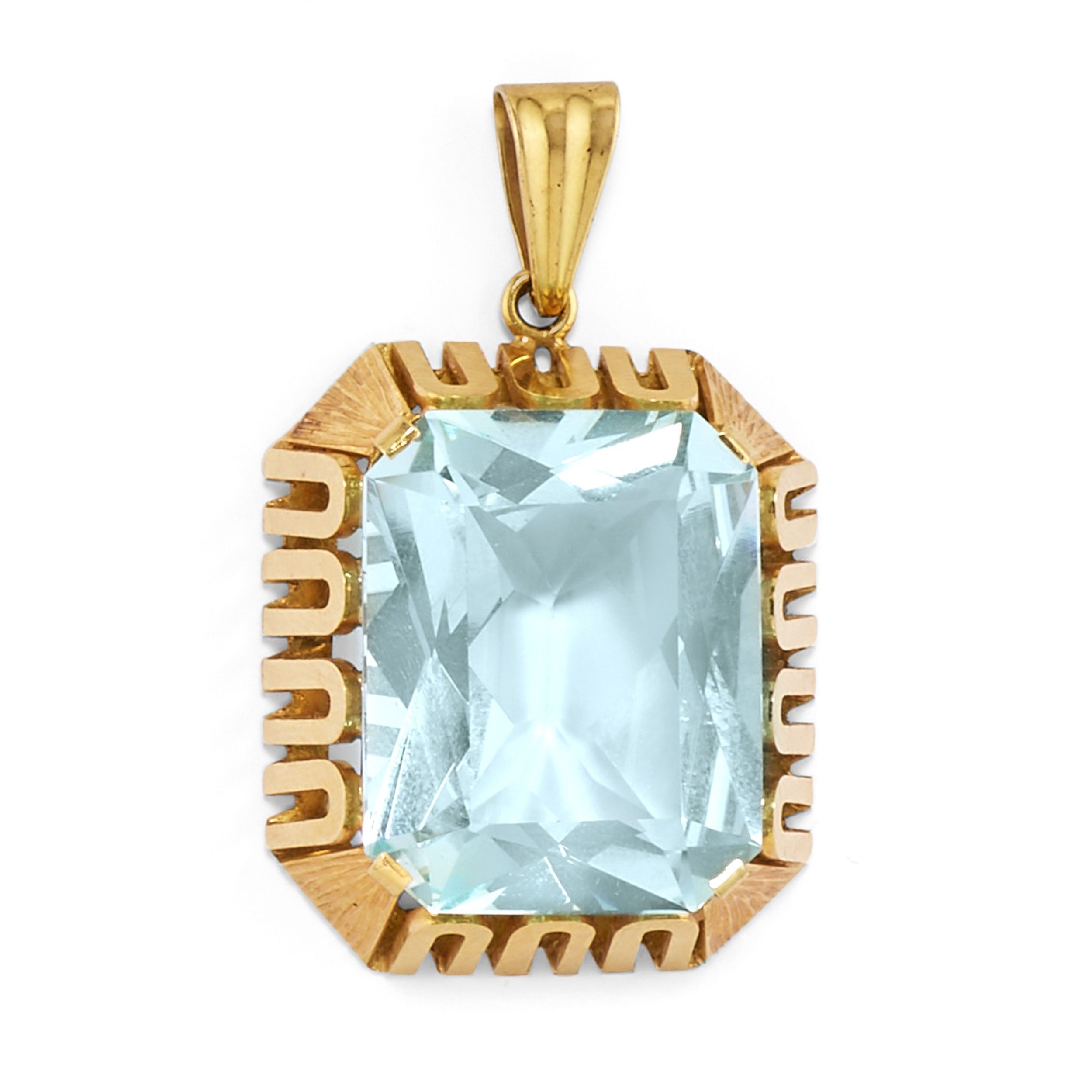 con al centro acquamarina taglio rettangolare a contorno ottagonale di ct 32,00 circa.