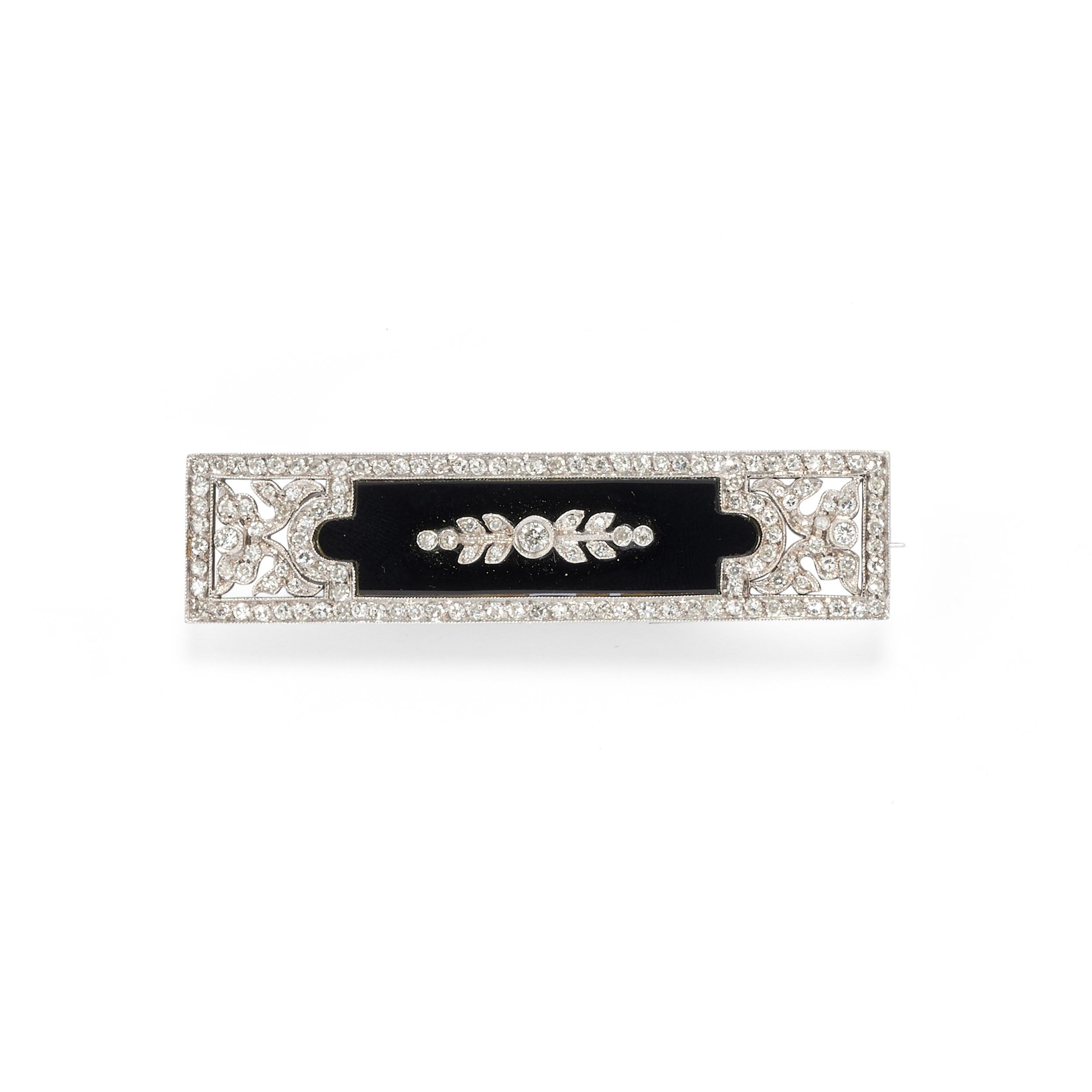 a barretta, al centro motivo in onice e diamanti taglio huit-huit.