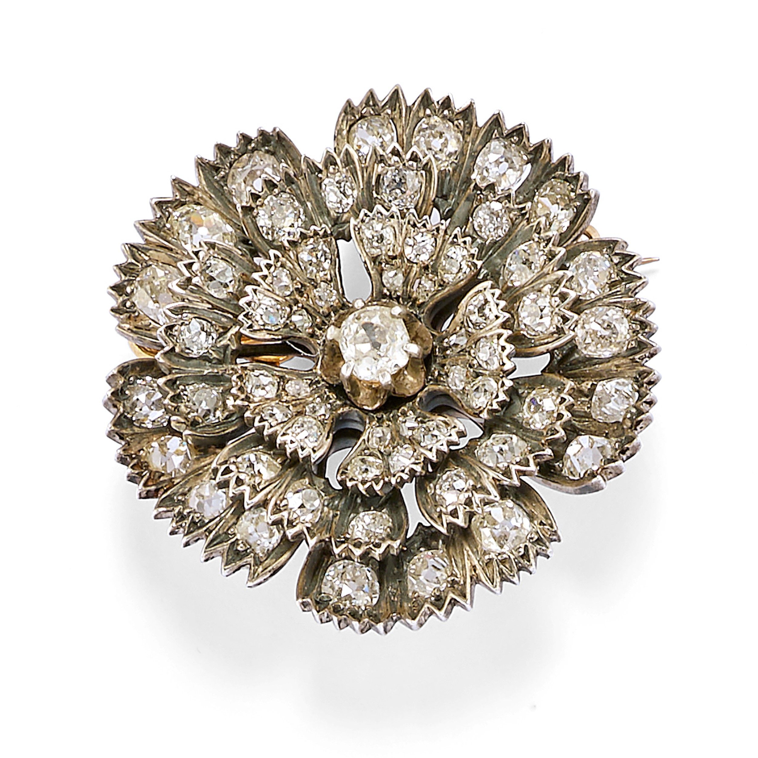fine XIX secolo a fiore, realizzata con diamanti taglio vecchio per totale ct 6,00 circa.