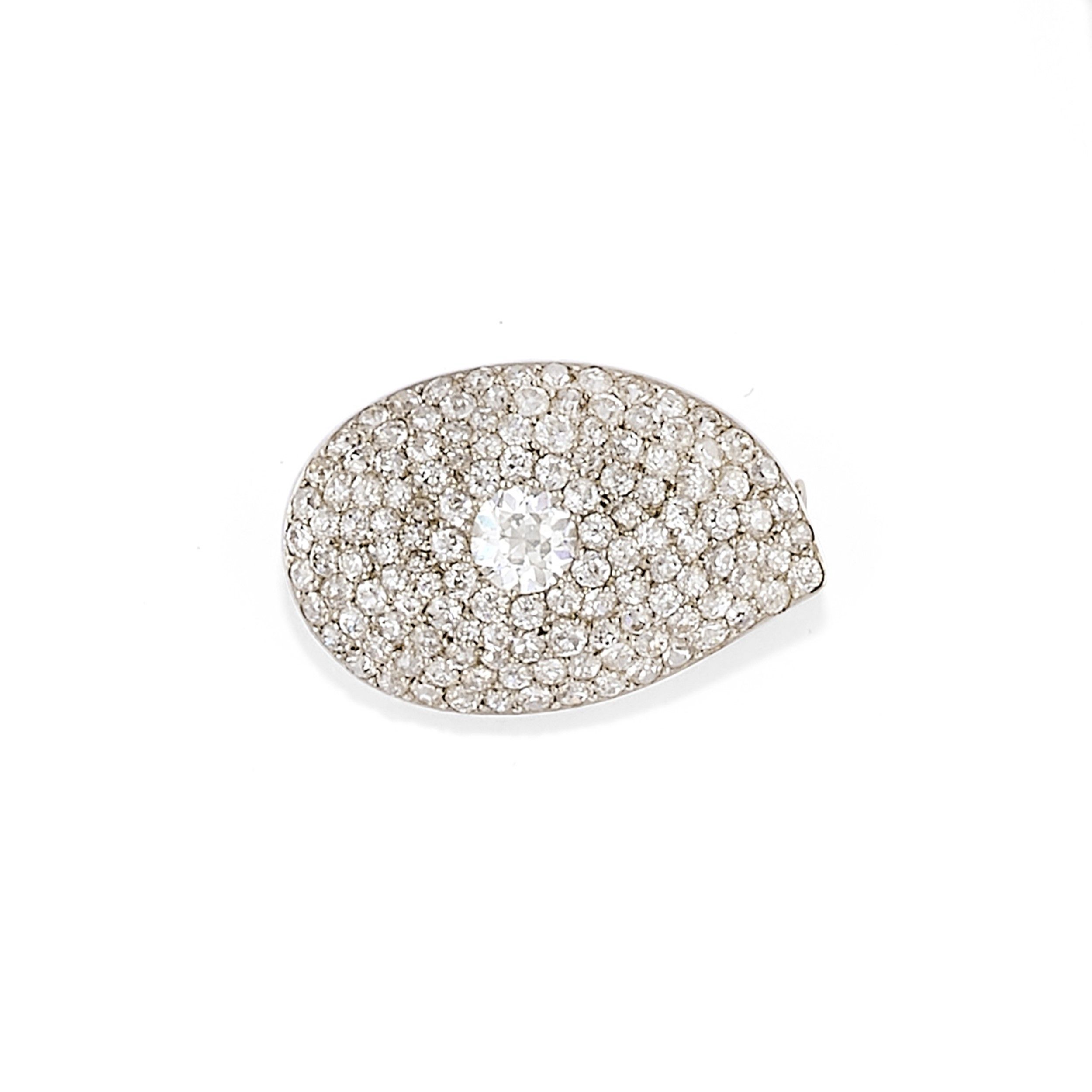 a goccia con al centro un diamante taglio vecchio di ct 0,70 circa e contorno in diamanti taglio vecchio per totale ct 3,00 circa.