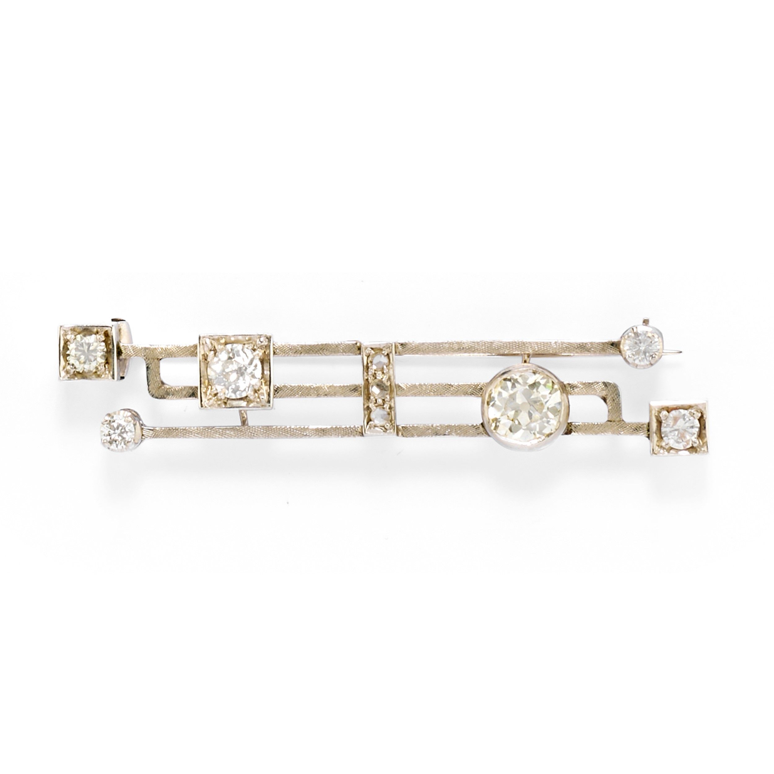 a barretta, impreziosita da diamanti taglio vecchio, brillante e rosa per totale ct 2,00 circa.