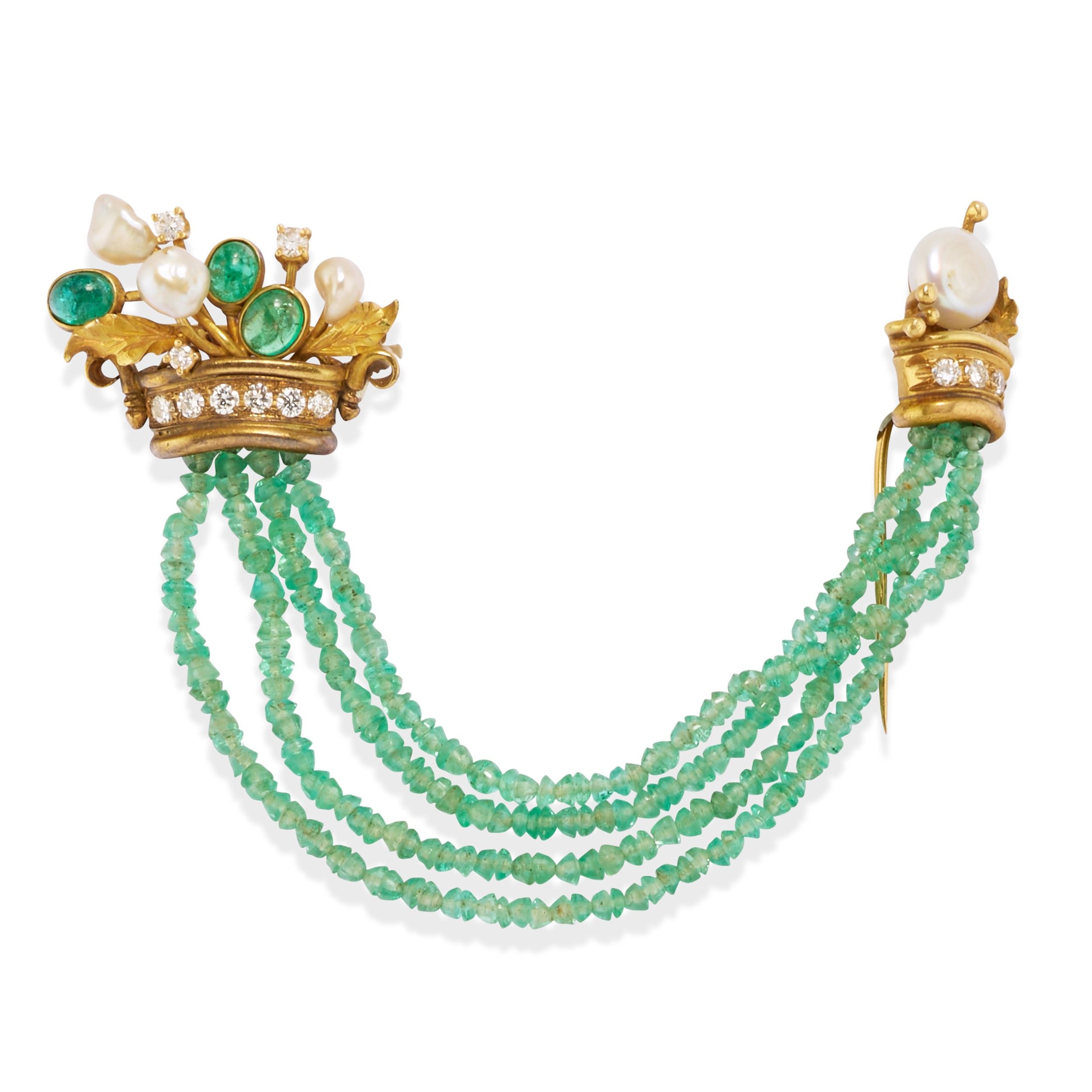 Spilla con smeraldi e perle
