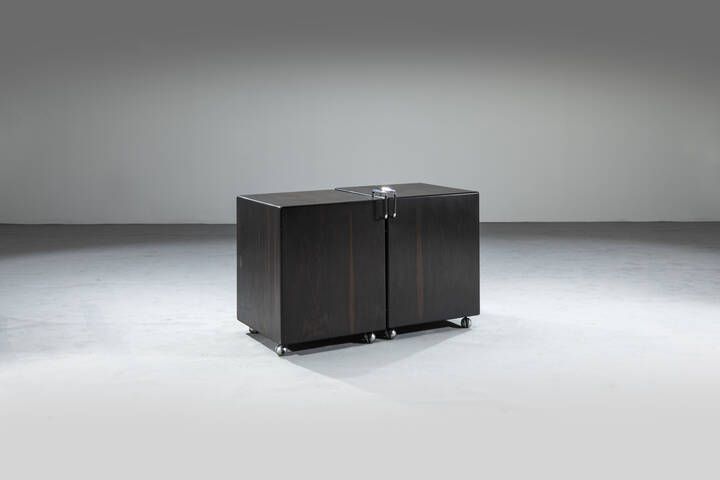 Due elementi orientabili incernierati fra loro in legno massello multistrato lastronato maniglie in acciaio cromato. Prod. Bernini anni '70 singolo modulo cm 80x65x60