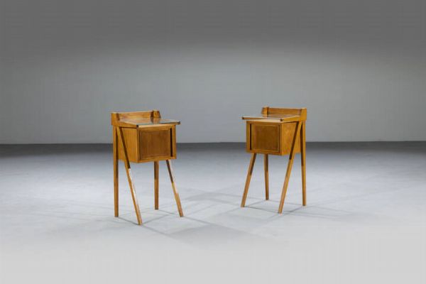 Coppia di comodini in legno e piani in vetro. Anni '50 cm 76x37x33 5 Difetti e [..]