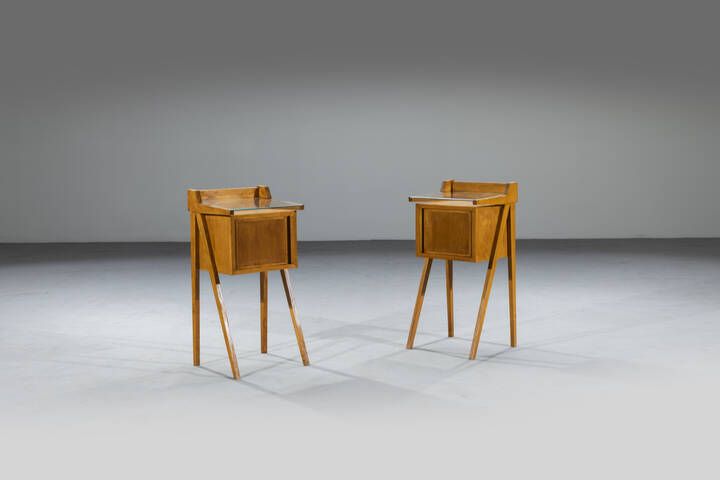 Coppia di comodini in legno e piani in vetro. Anni '50 cm 76x37x33 5 Difetti e piccola sbeccatura del piano