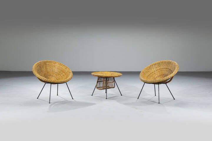 Tondino in metallo verniciato bamboo e vimini. Anni '60 cm 70x74x65 cm 43x59 Piccoli difetti