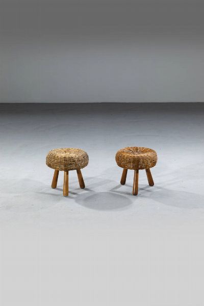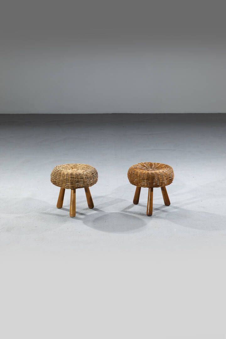 Vimini intrecciato gambe in legno. Anni '50 cm 30x32 Difetti