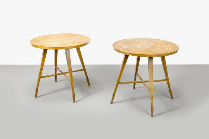 Coppia di tavolini rotondi in legno di noce. Anni '50 cm 57x60