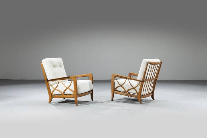 Legno e imbottitura rivestimenta in tessuto. Anni '50 cm 80x66x82