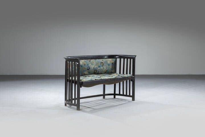 Struttura in legno imbottitura rivestita in tessuto. Prod. da Jacob e Josef Kohn Vienna dal 1909 cm 76x122x60 Difetti