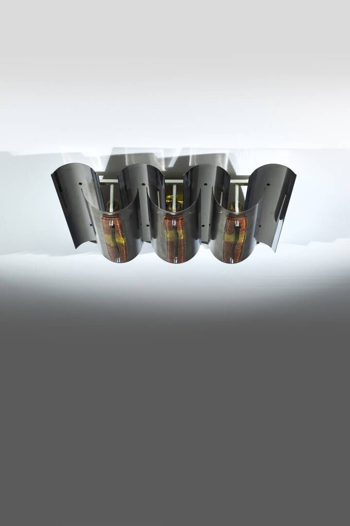 Metallo cromato satinato e vetro di Murano. Anni '70 h cm 12x67x61
