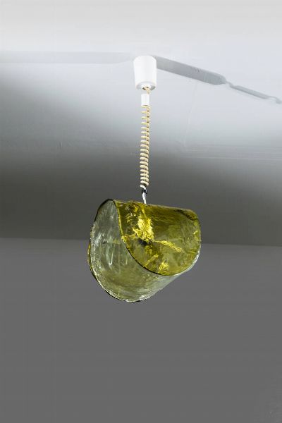 Struttura in acciaio e diffusore in vetro colorato. Anni '60 h cm 80x27