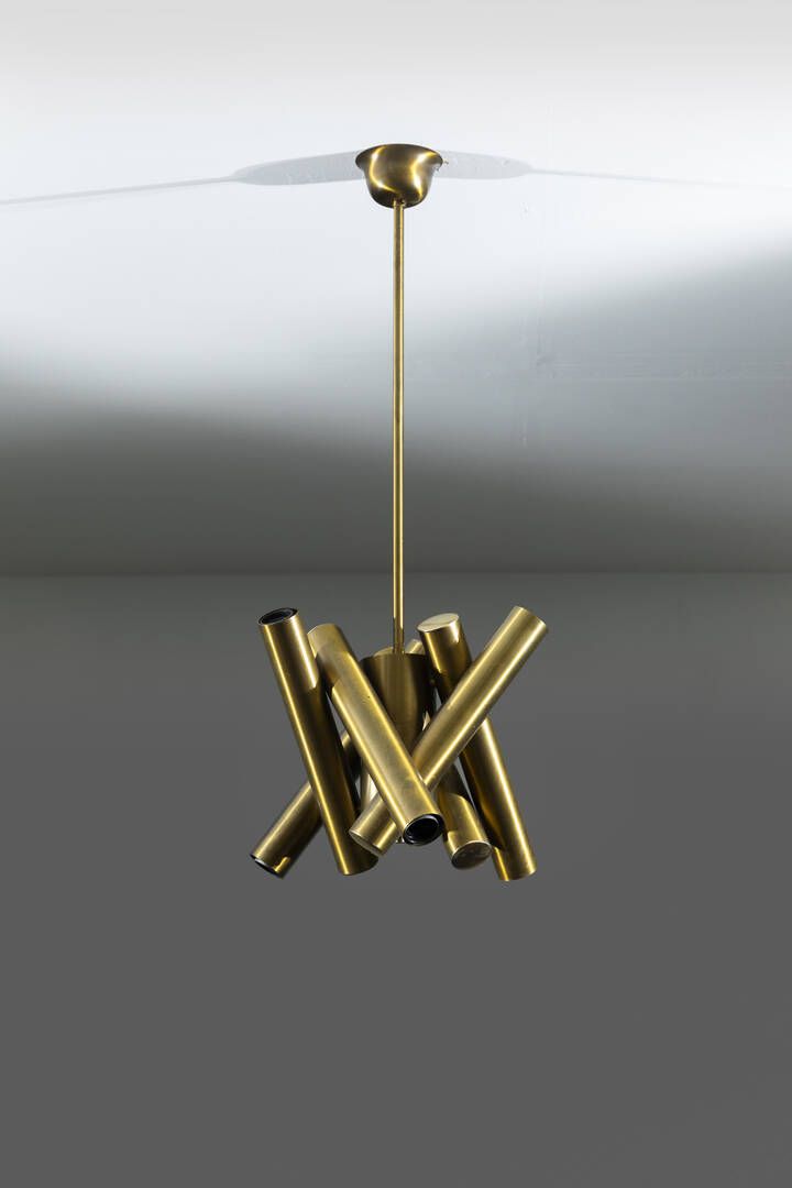 Lampada a sospensione in ottone. Anni '60 h cm 90x40