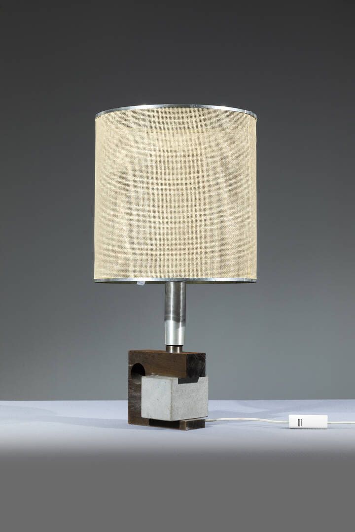Struttura in legno e pietra naturale diffusore in tessuto e particolari in metallo. Anni '60 h cm 74 5x39