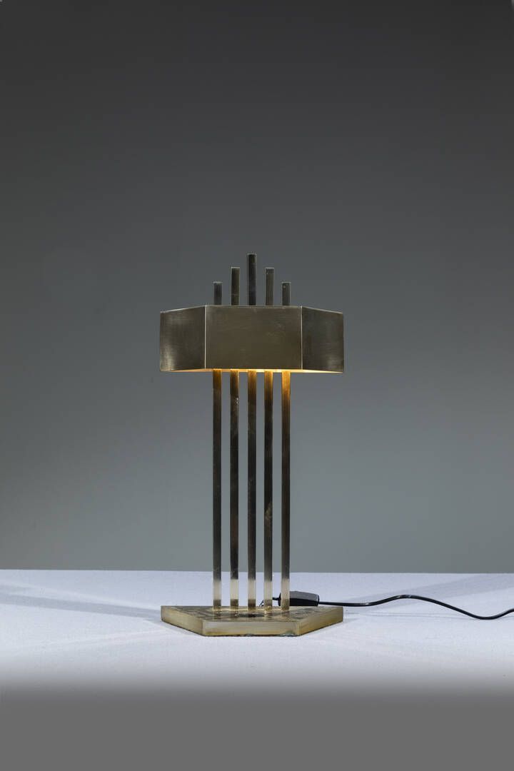 Struttura in ottone nichelato. Progettata per l'Esposizione Universale di Parigi 1925 Prod. Recente h cm 32 5x26x12 5 Piccoli difetti