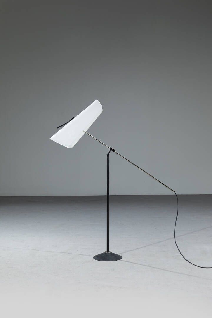 Struttura in metallo verniciato e acciaio base in ghisa diffusore in plexiglass. Anni '70 h cm 133x95 Difetti