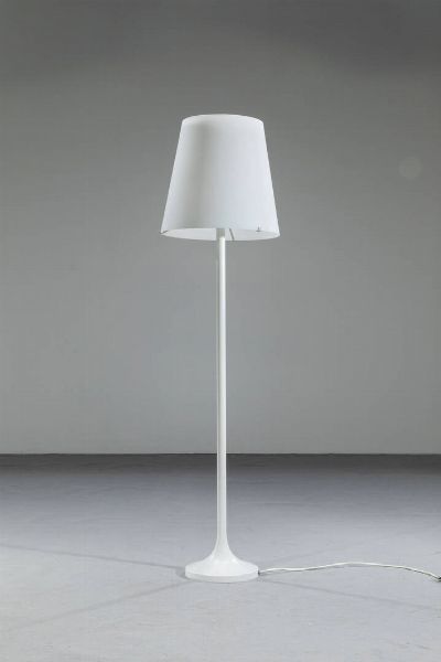 Struttura in metallo laccato e diffusore in vetro opalino satinato. Prod. Fontana Arte anni '60 h cm 178x47x47 Piccole sbeccature