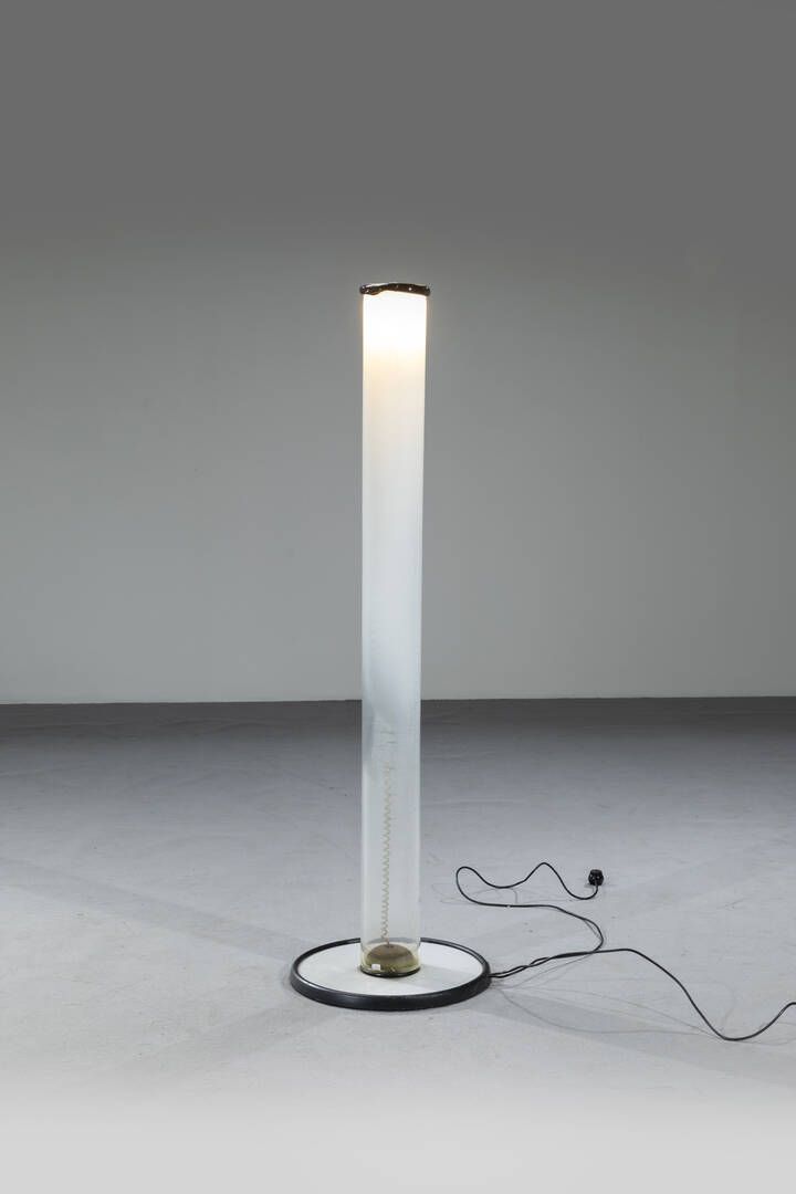 Struttura in metallo diffusore in vetro. Prod. Leucos anni '80 h cm 161x48 Difetti