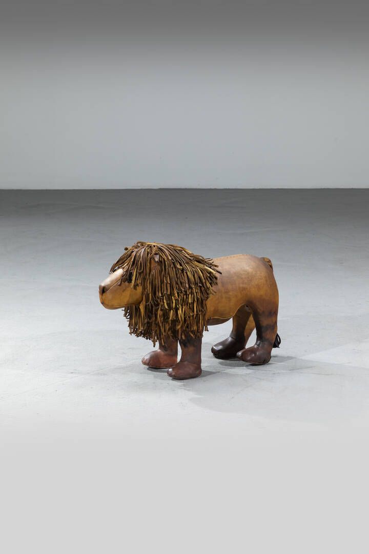 Leone rivestito in cuoio. Anni '70 cm 48x73x30 Difetti
