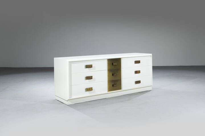 Struttura in legno laccato e particolari in ottone. Anni '70 cm 70x180x50 Bibl.:-La rivista dell'arredamento Interni n. 75 marzo 1973 Piccoli difetti