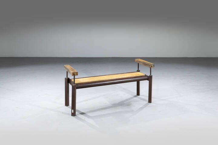Struttura in metallo legno e particolari in ottone. Anni 2000 cm 74x139x52