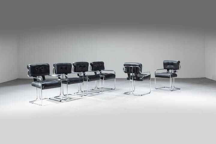 Tubolare in metallo cromato seduta e schienale rivestiti in pelle. Anni '70 cm 82x52x60 Difetti