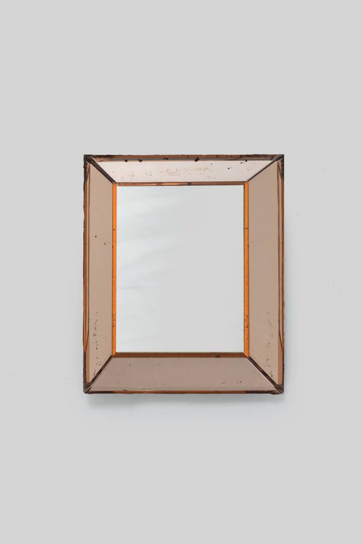 Struttura in legno vetri colorati e vetro specchiato. Anni '40 cm 36x30 Difetti