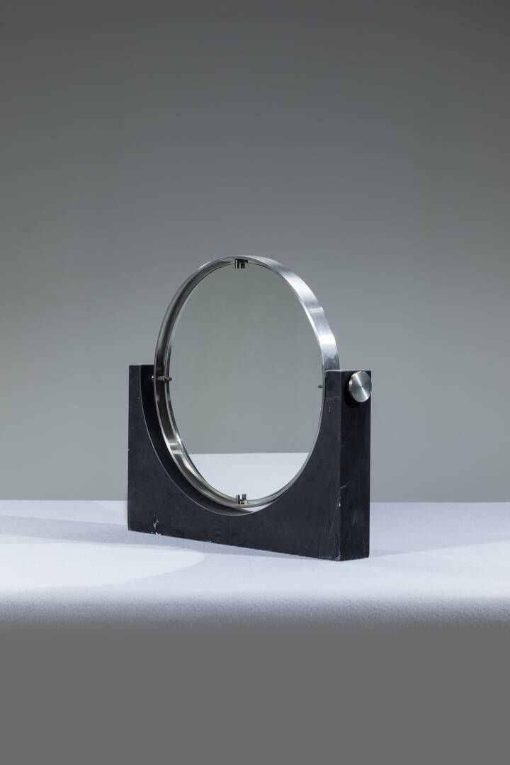 Base in marmo vetro specchiato e particolari in acciaio. Anni '60 cm 41x44