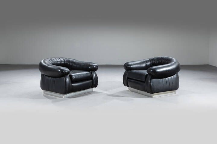 Struttura in legno imbottitura rivestita in pelle e particolari in alluminio. Anni '70 cm 68x100x85 Difetti
