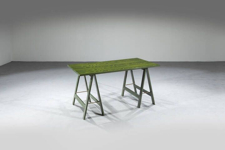 Tavolo con sostegni a cavalletto in legno. Anni '60 cm 72x150x80